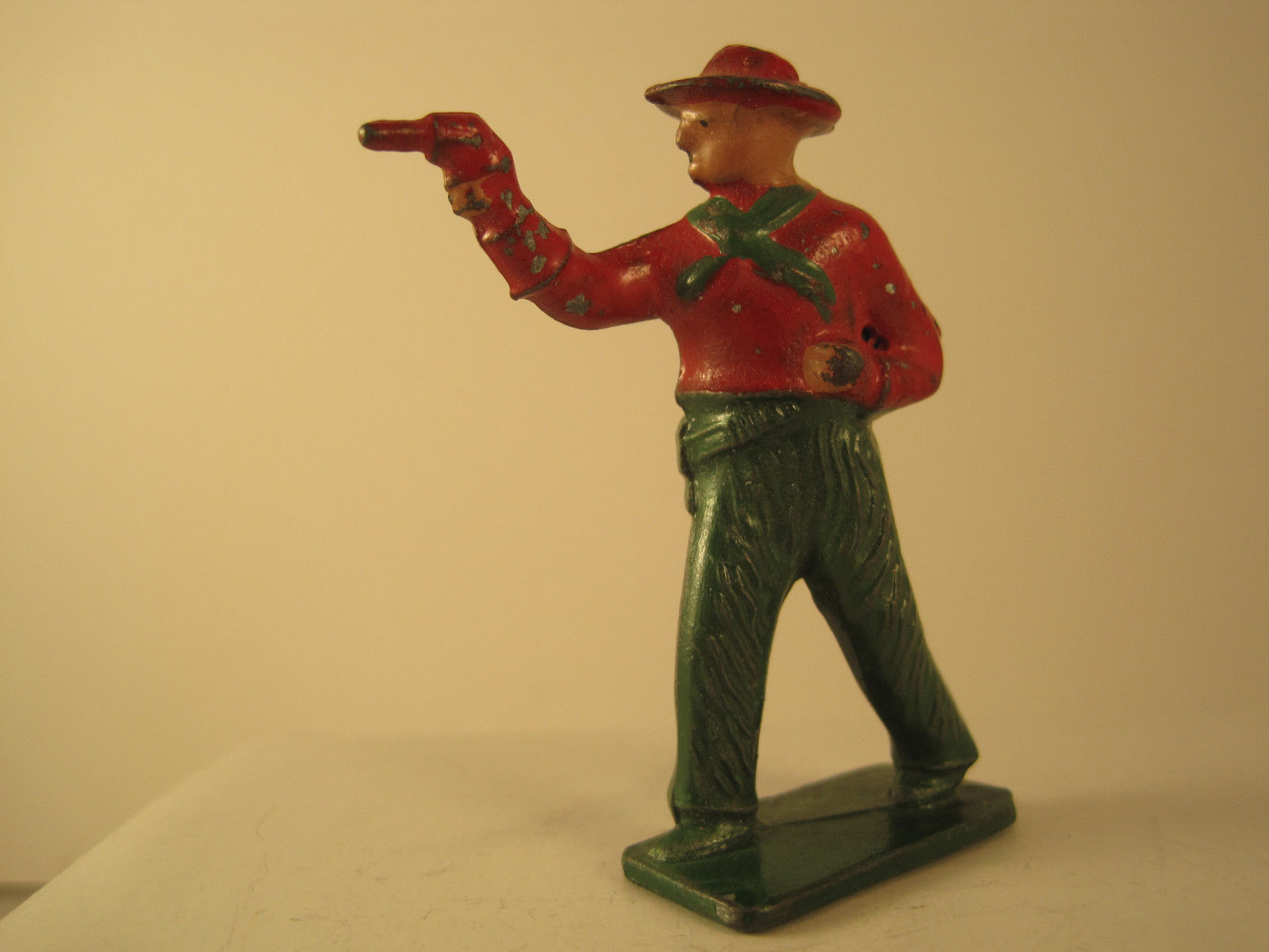 Vintage Lincoln Log Barclay toy cowboy firing pistol LL8 96%