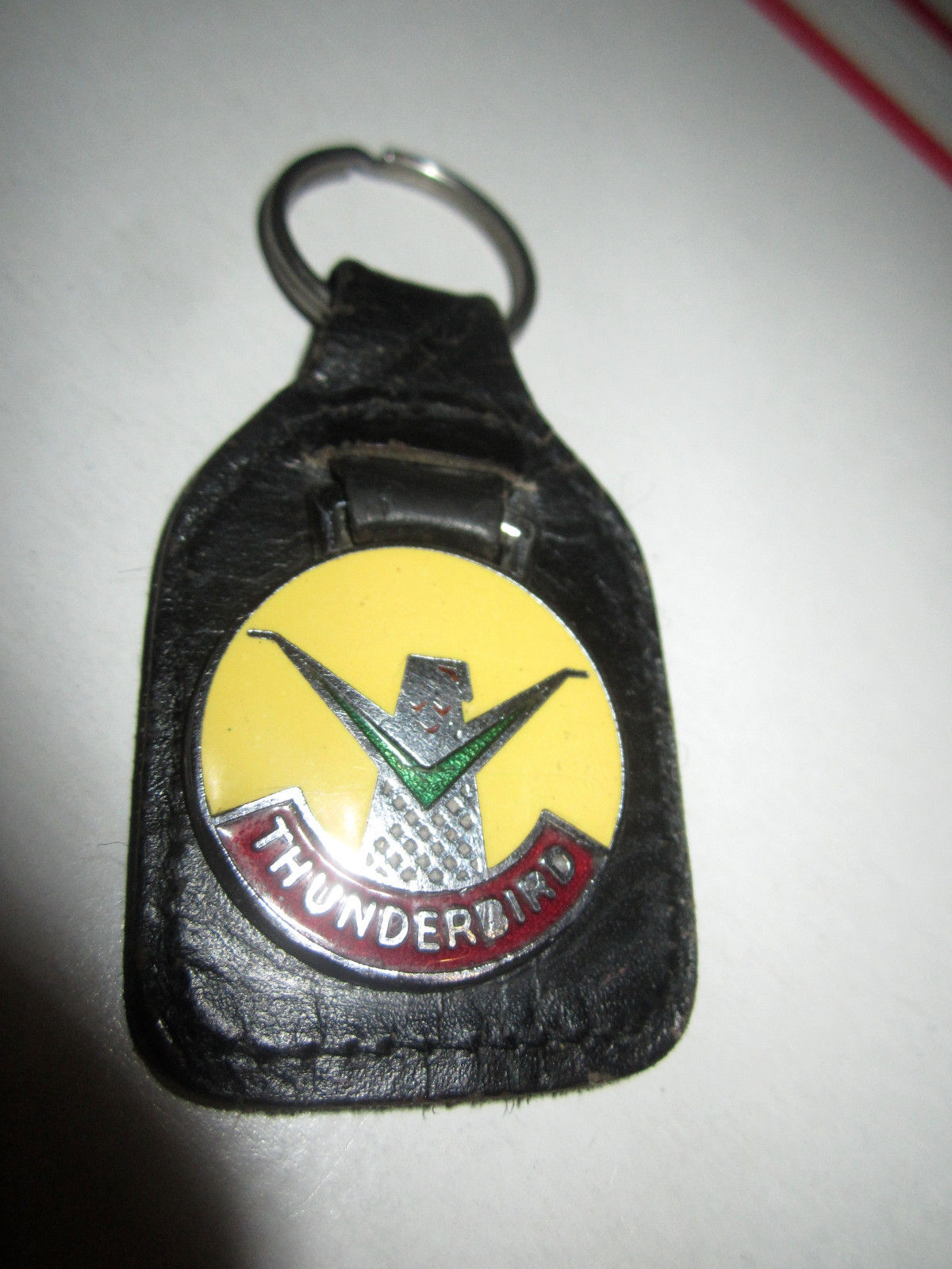Title (ebay affiliate link): VINTAGE FORD THUNDERBIRD ENAMALED KEYCHAIN W/ LEATHER SWATCH GOOD COND.