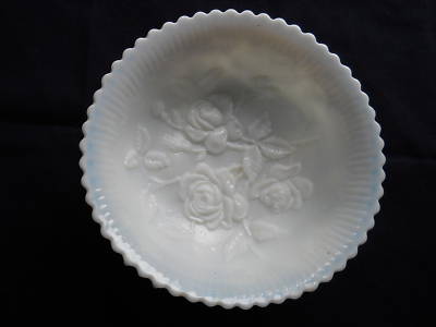 Imperial Milk Glass 3-Toed Bowl Dish Roses Scalloped