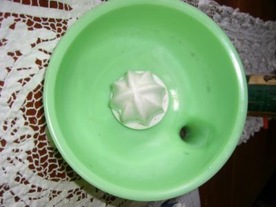 GREEN MILK GLASS SUNBEAM MIXER JUICER ATTACHMENT VTG