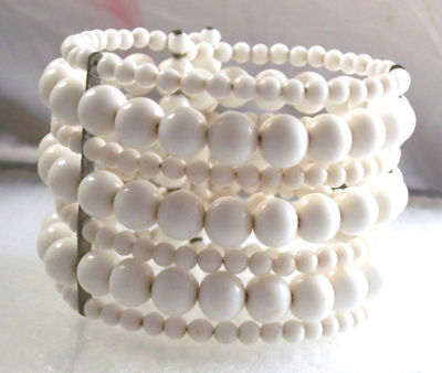 Vintage Milk Glass Bead Bracelet Wrap WIDE FAB