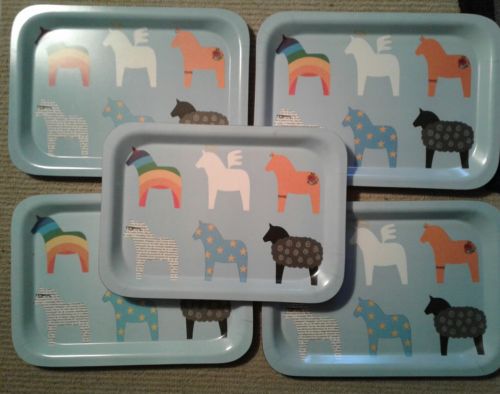 Title (ebay affiliate link): (5) Children''s Plastic Coated Trays Dala Horses Ikea 7 3/4" x 11"