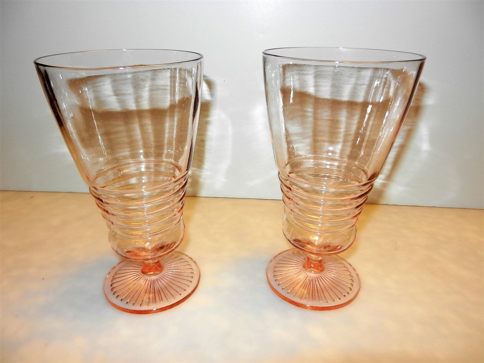 Lot of 2 Tall Pink Depression Glass Iced Tea