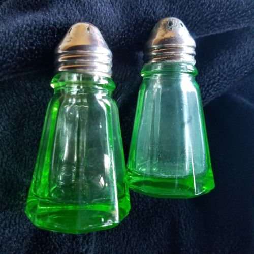 hazel atlas green depression glass salt and pepper shakers