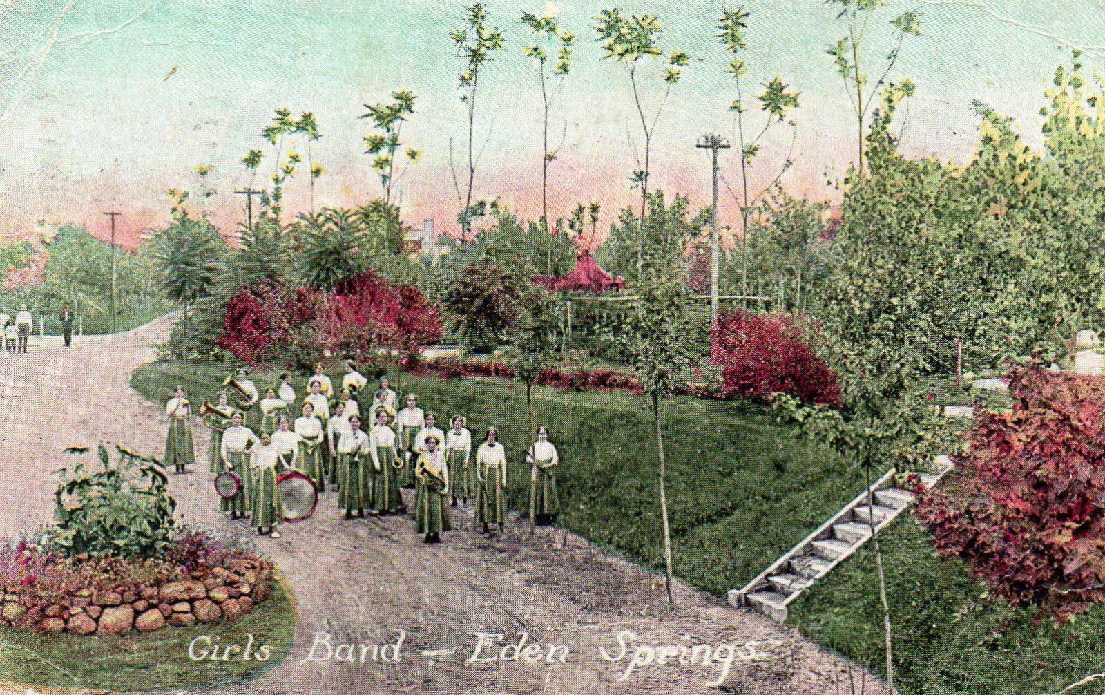 Title (ebay affiliate link): OLD POSTCARD GIRLS BAND EDEN SPRINGS HOUSE OF DAVID BENTON HARBOR MI 1916