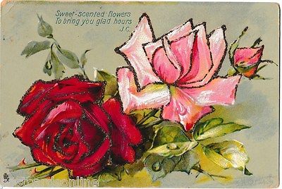Title (ebay affiliate link): B8882cgt Flowers Roses with glitter Poem Tucks vintage postcard