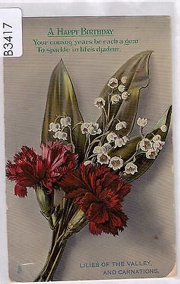 B3417cgt Greetings Birthday Lillies of the Valley Carnations Tucks vint postcard