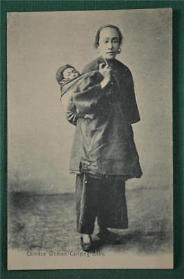 VINTAGE POSTCARD CHINESE WOMAN CARRYING BABY HONGKONG CHINA (D201)