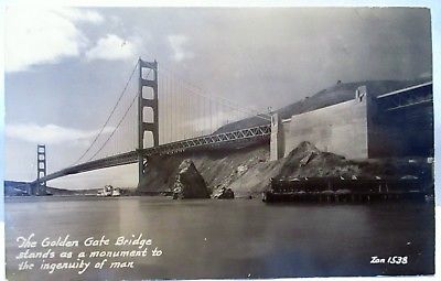 Title (ebay affiliate link): 1940s REAL PHOTO POSTCARD GOLDEN GATE BRIDGE,A MONUMENT TO INGENUITY OF MAN