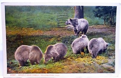 1920 POSTCARD GRIZZLY BEAR FAMILY YELLOWSTONE NATIONAL PARK