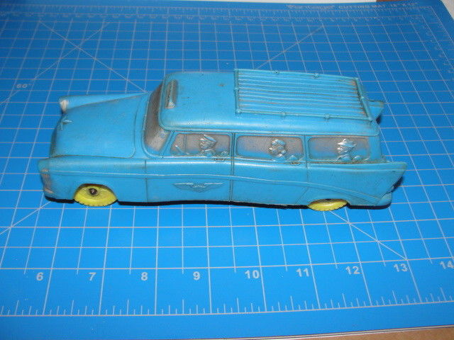 RARE HTF BLUE AUBURN RUBBER. TOY CAR #504 1956 PLYMOUTH STATION WAGON