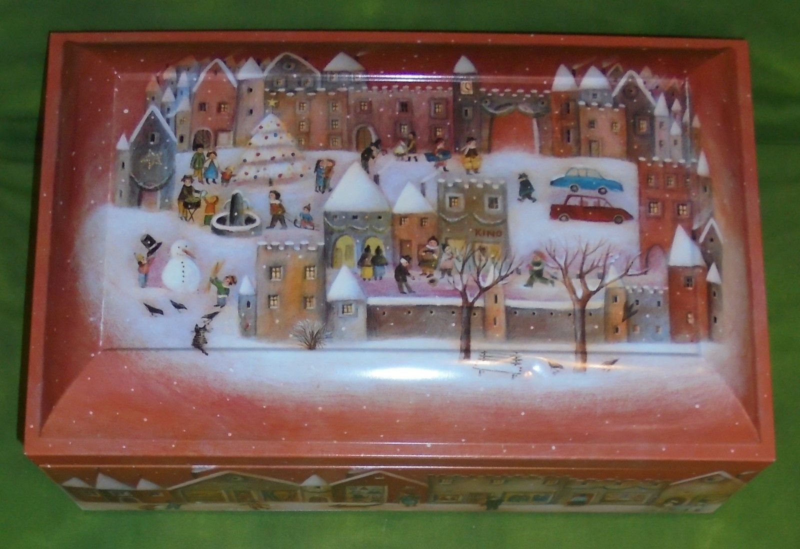 VERY NICE HOLIDAY-THEMED LARGER TIN-NURNBERG,GERMANY-COOKIES,GIFTS