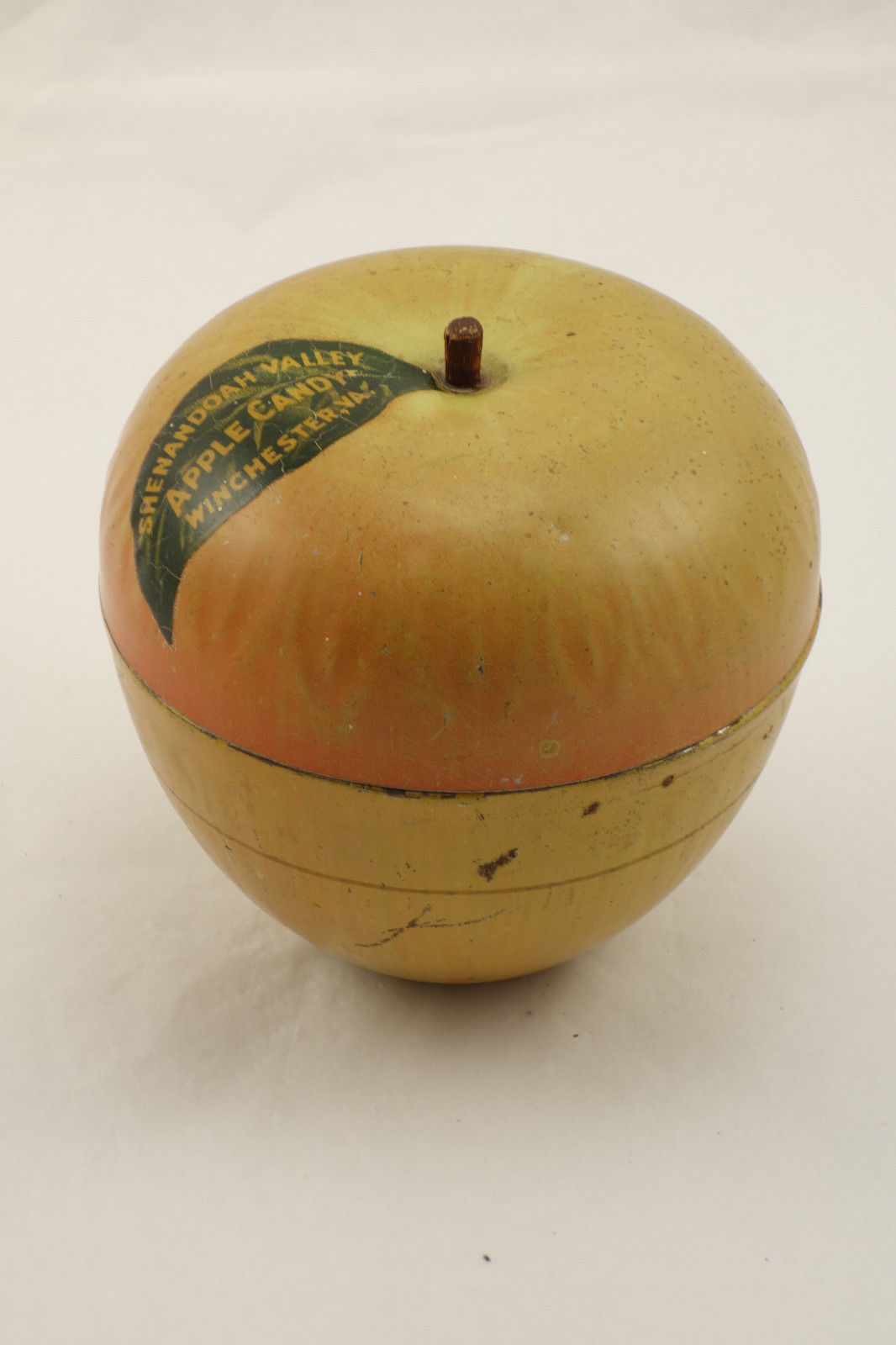 Title (ebay affiliate link): Vintage Shenandoah Valley Tin Apple Candy Container Wyandotte Toys