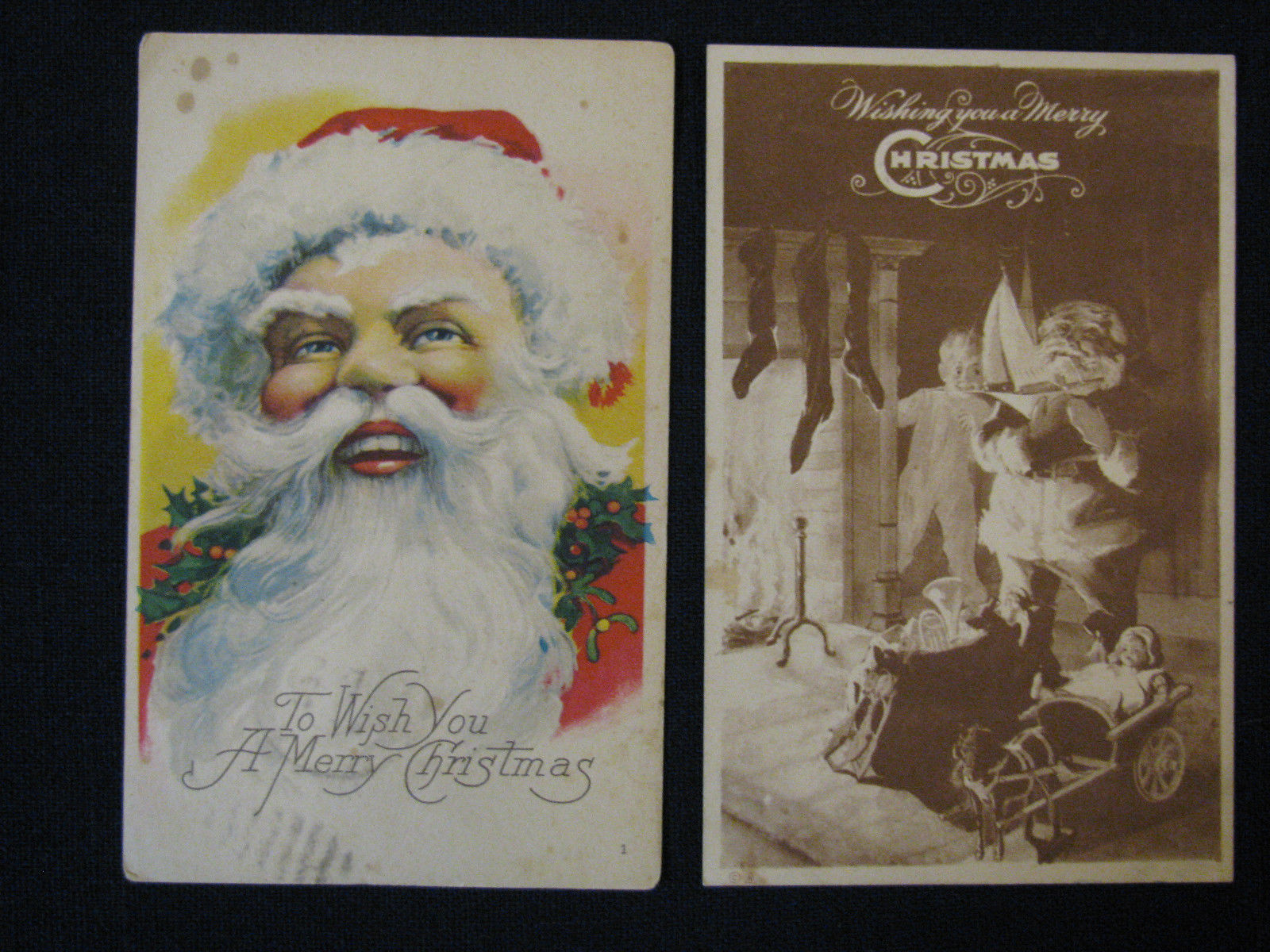 Lot of 2 Santa Claus in red suit - Vintage Christmas postcard c1920''s