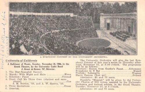 Title (ebay affiliate link): UNIVERSITY CALIFORNIA BERKELEY~SYMPHONY CONCERT BY ORCHESTRA POSTCARD 1906