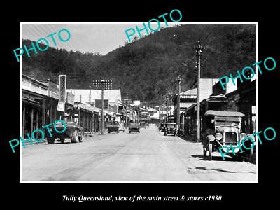 OLD LARGE HISTORIC PHOTO OF TULLY QUEENSLAND, THE MAIN ST & STORES c1930