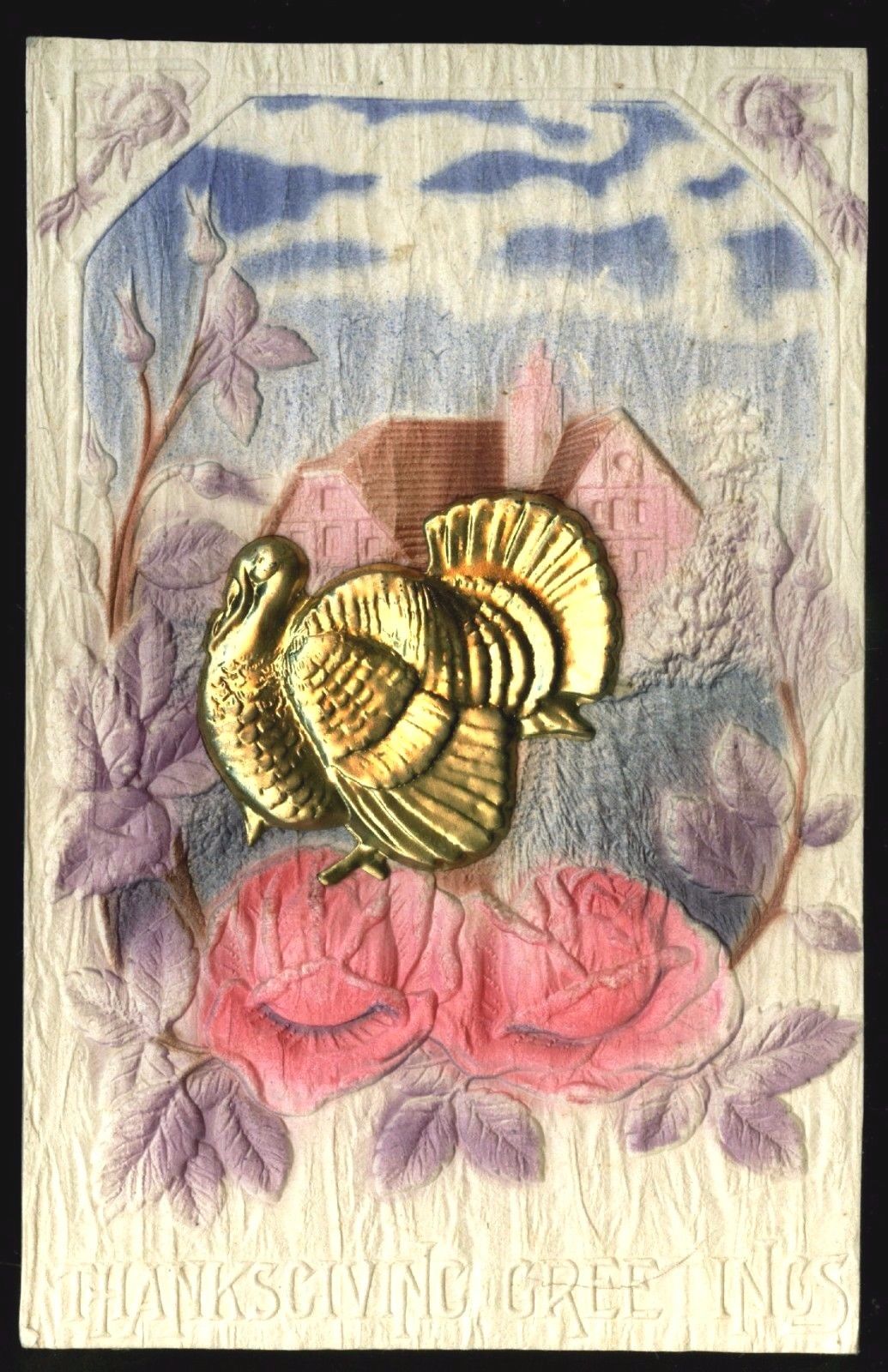 Title (ebay affiliate link): Heavily Embossed, Hand Colored, Plastic Tom Turkey, "Thanksgiving Greetings"...
