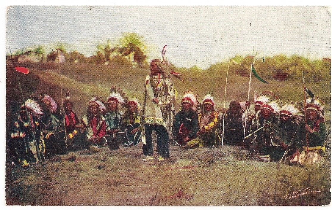 Title (ebay affiliate link): Chief Little Wound in Council, Sioux Warriors, Indian, native american Postcard