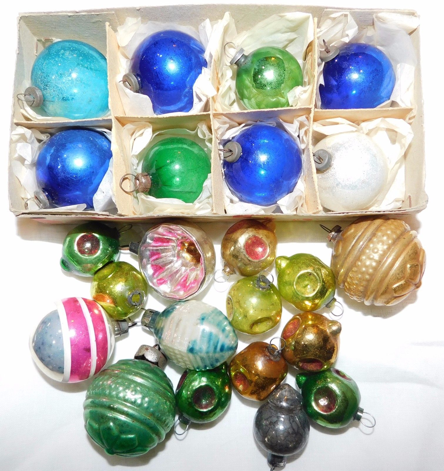 Title (ebay affiliate link): Vintage Feather Tree Ornament Lot Indents Rounds Lanterns NICE
