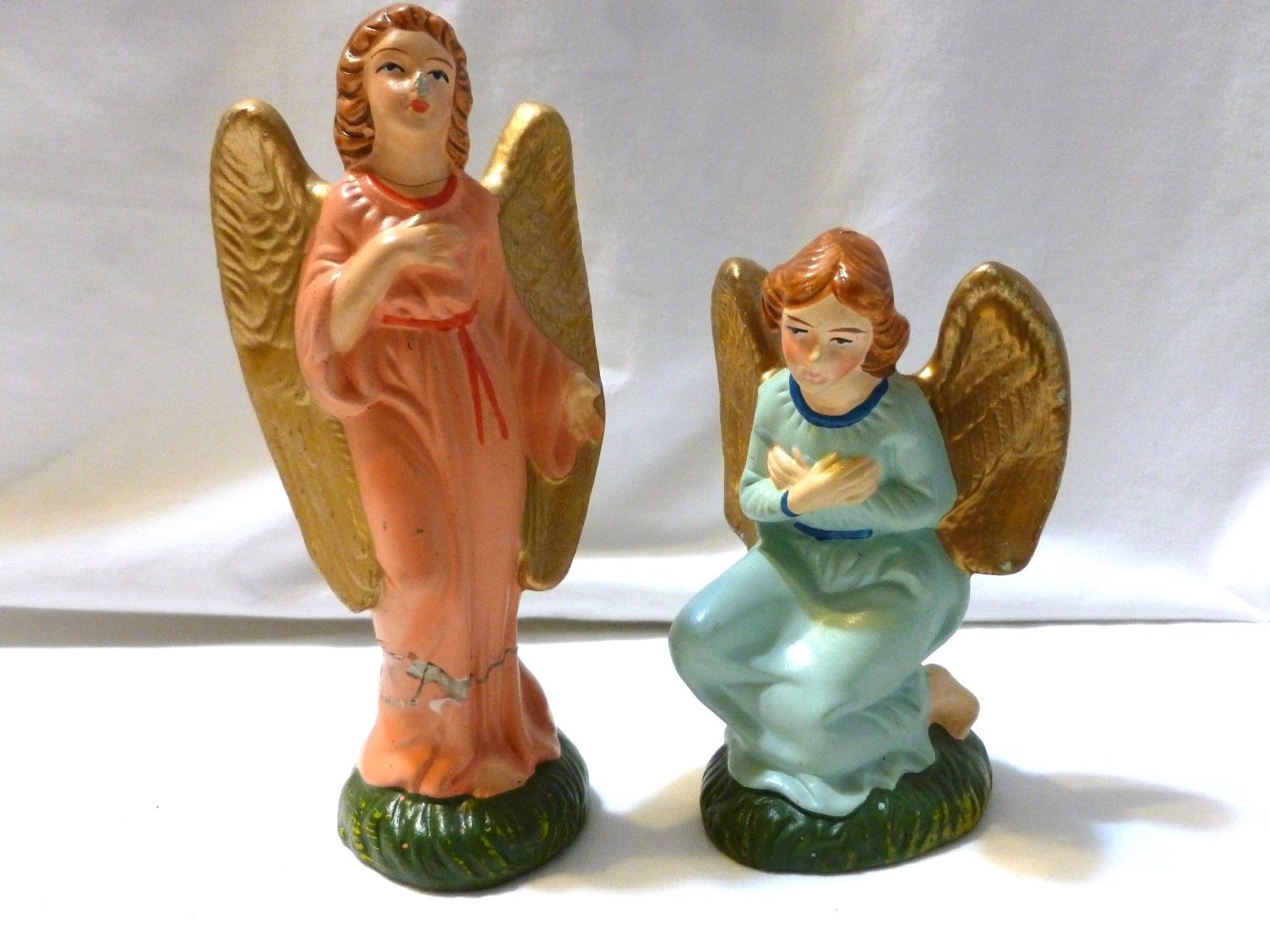 Title (ebay affiliate link): VINTAGE NATIVITY ANGELS SET LOT 2 JAPAN COMPOSITION STANDING KNEELING PINK BLUE
