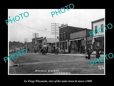OLD LARGE HISTORIC PHOTO OF LA FARGE WISCONSIN, THE MAIN STREET & STORES c1908