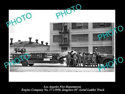 OLD HISTORIC PHOTO OF LOS ANGELES FIRE DEPARTMENT, THE No 17 LADDER TRUCK c1950