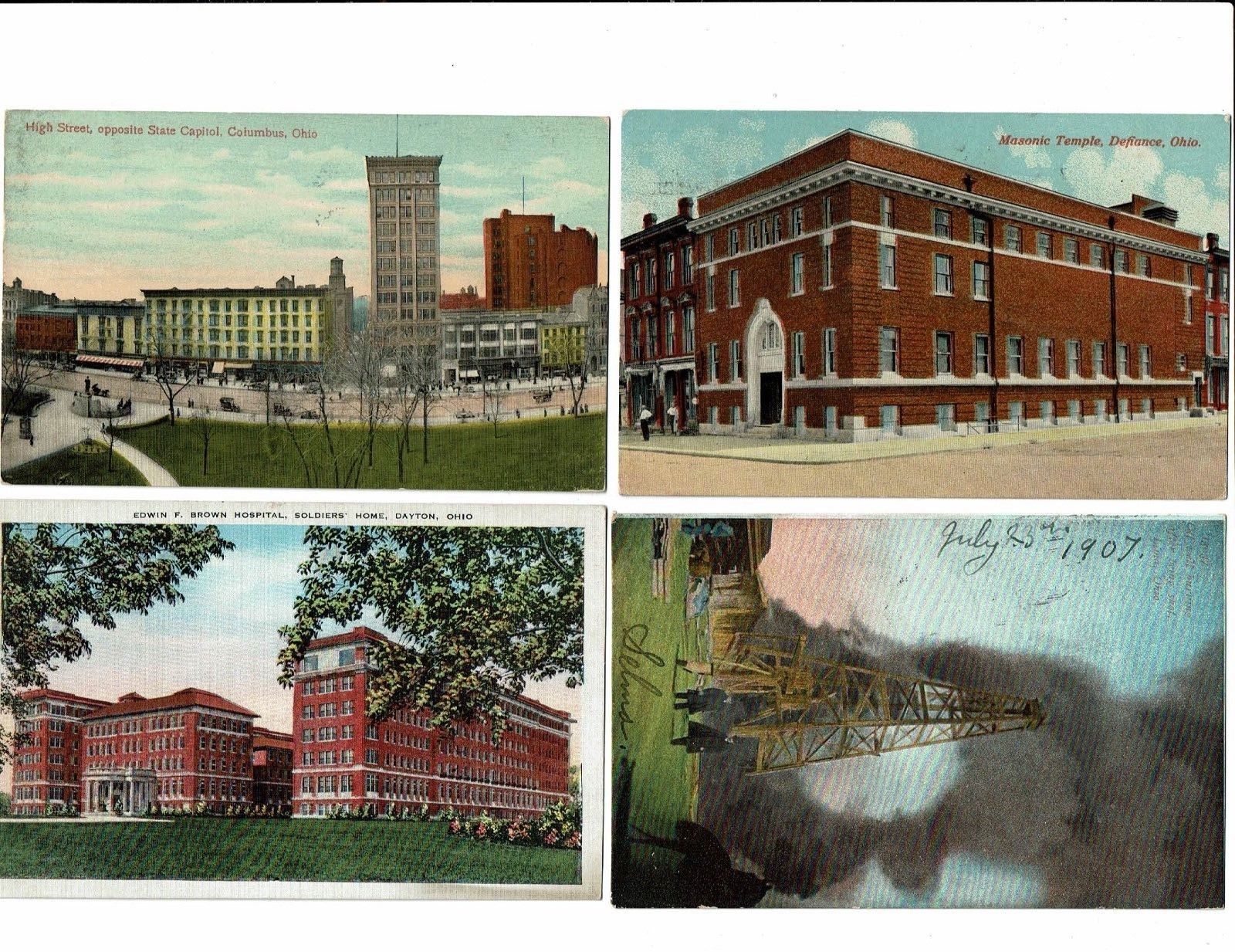 4 Card Ohio Lot, Oil Well Blows, Defiance Masonic, Dayton Hospital, Columbus St.