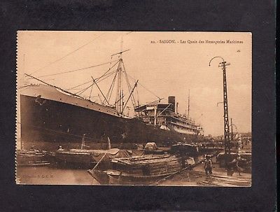 Unidentified Messageries Maritimes France liner Saigon docks Vietnam postcard
