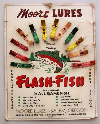 12 FLASH FISH LURES w/ADVERTISING BOARD; VERY RARE, NR!
