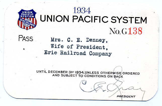 Railroad Annual Pass - Union Pacific R.R., 1934