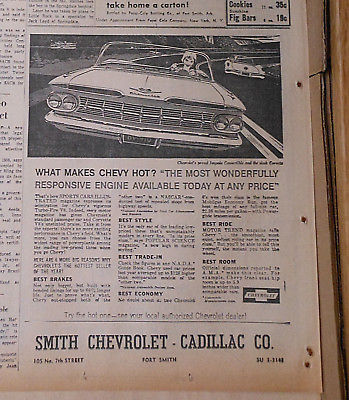 Title (ebay affiliate link): 1959 newspaper ad for Chevrolet - What Makes Chevy Hot? Impala convertible