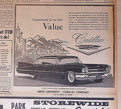 Title (ebay affiliate link): 1959 newspaper ad for Cadillac - Unquestioned as the best value