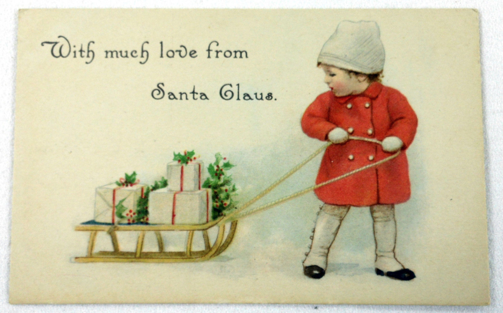 Title (ebay affiliate link): 1917 Gibson Art Lines Christmas w Cutie Pie Child & Sled w Presents Postcard