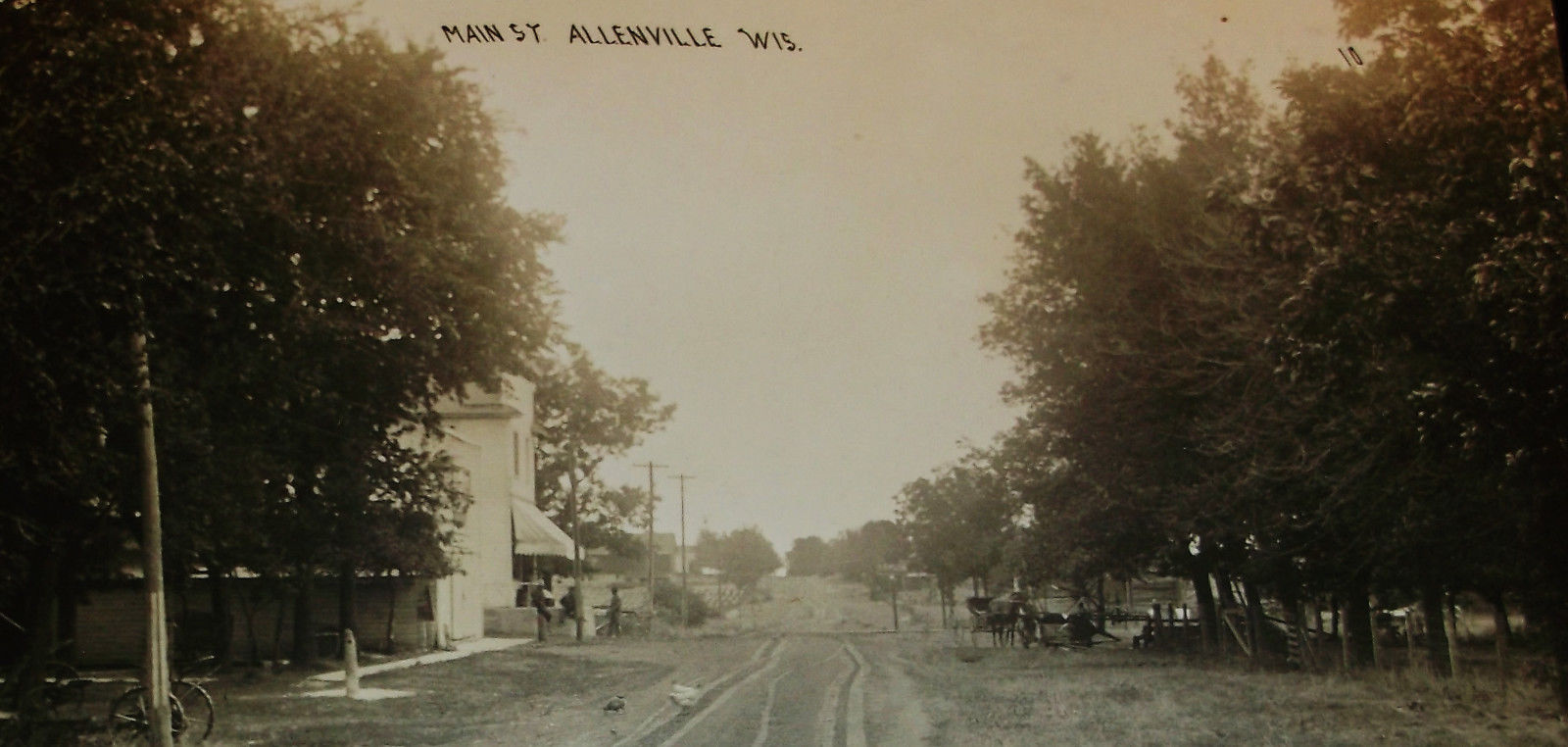 Title (ebay affiliate link): ANTIQUE 1911 RPPC REAL PHOTO POSTCARD MAIN STREET ALLENSVILLE WISCONSIN