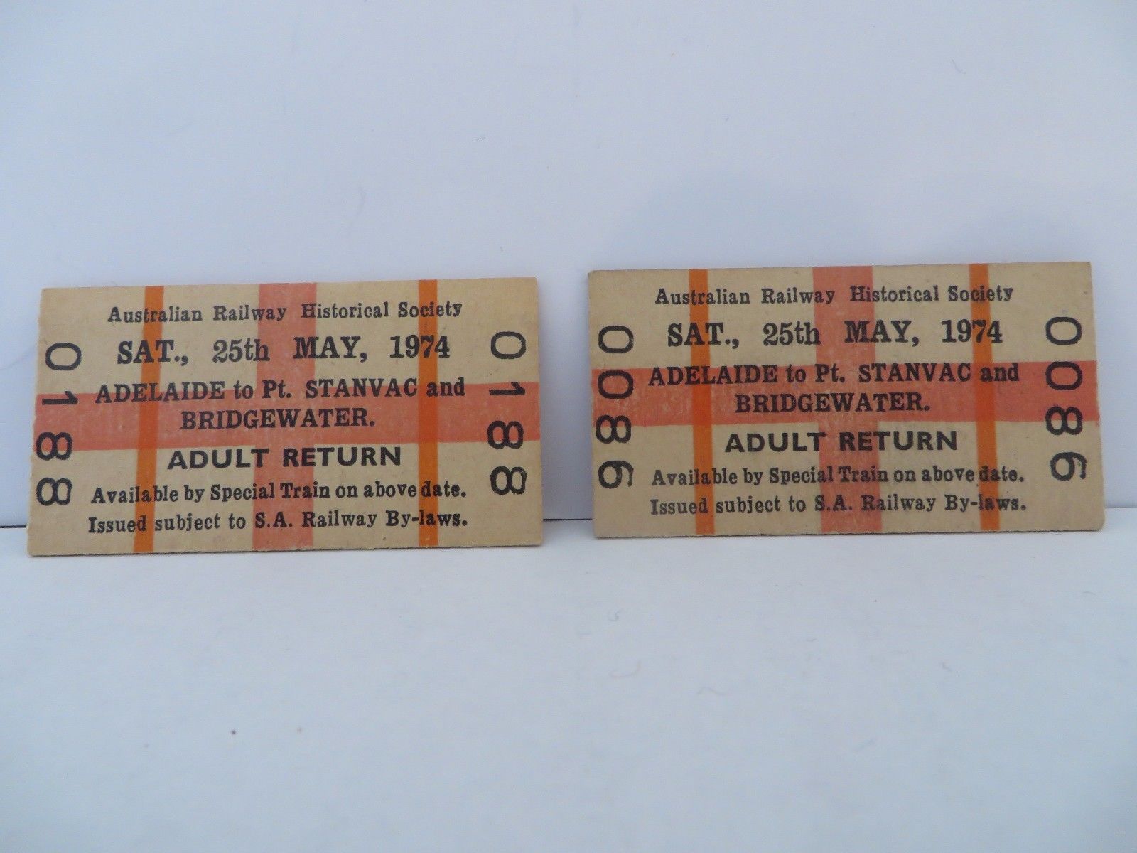 South Australian Railways ARHS Adel Pt Stanvac Bridgewater Return Tickets 1974