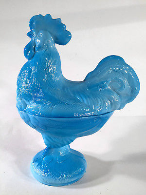 Title (ebay affiliate link): Rosso Westmoreland Blue Milk Glass Standing Rooster Covered Dish