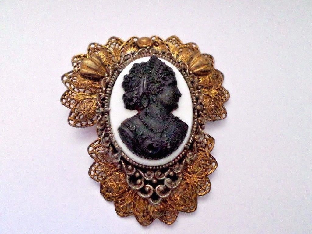 Title (ebay affiliate link): Vintage Victorian Fur Clip with Cameo Black Onyx on White MIlkglass