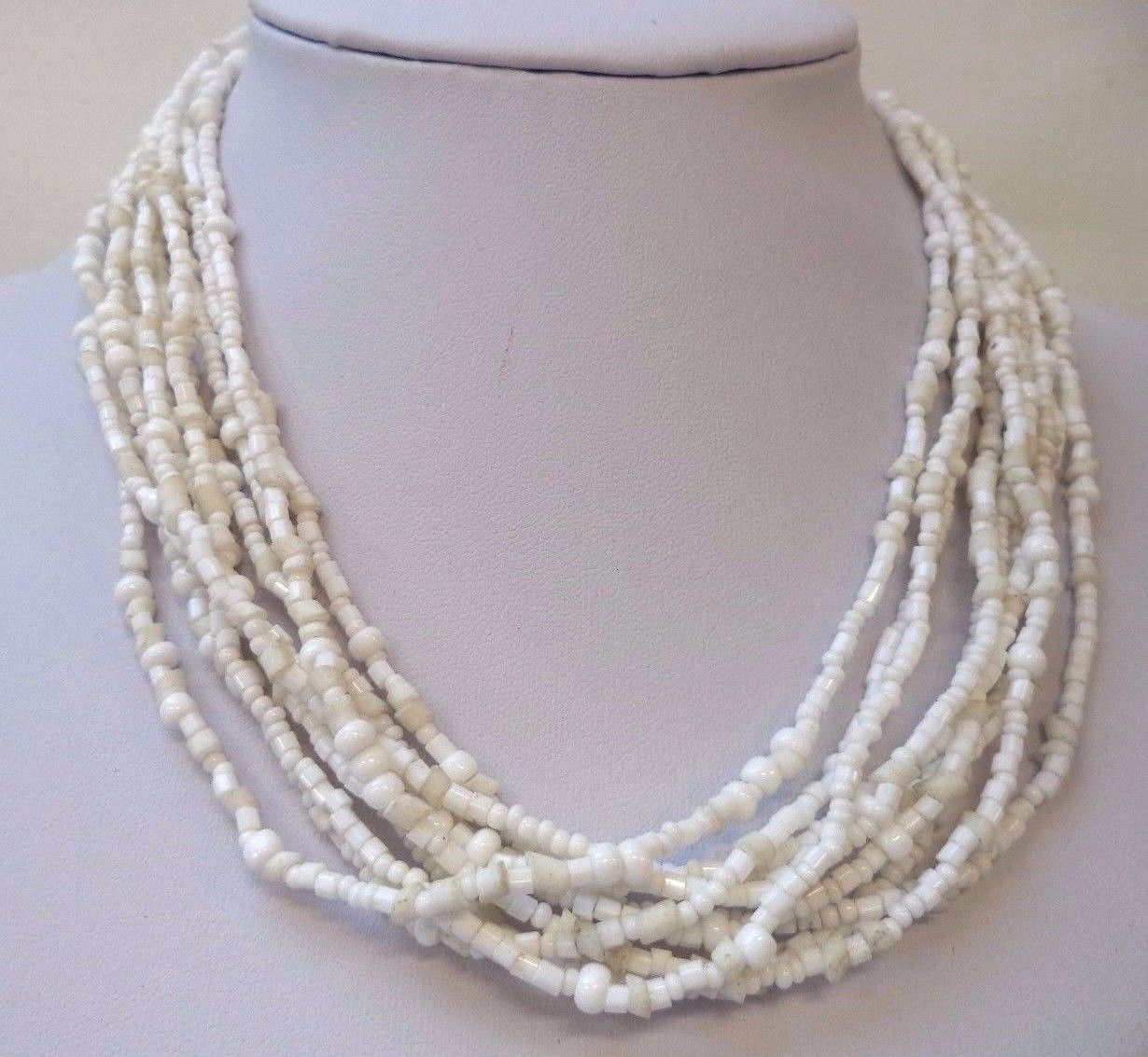 Title (ebay affiliate link): STUNNING VINTAGE ESTATE MILK GLASS MULTIPLE STRAND 17 1/2" NECKLACE!!! 9024A