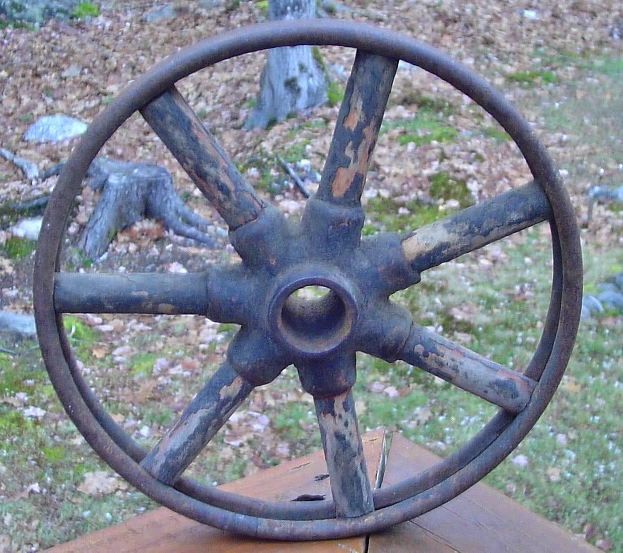 Title (ebay affiliate link): Antique Vintage Iron & Wood Wheel embossed 828 Wooden Spokes 8" Diameter