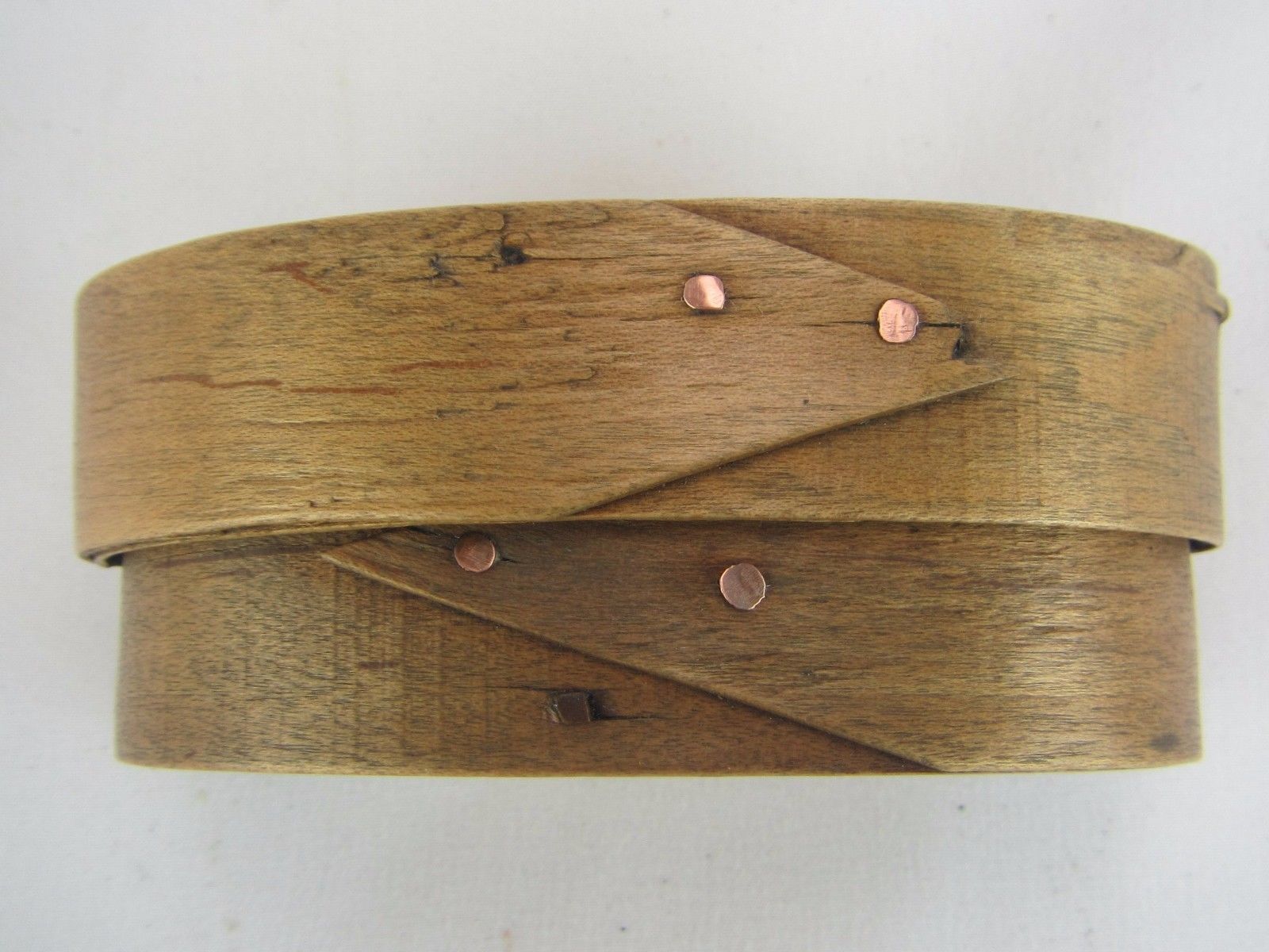 Title (ebay affiliate link): Antique Bentwood Miniature Oval Wood Pantry Box and Lid w/ Copper Nails