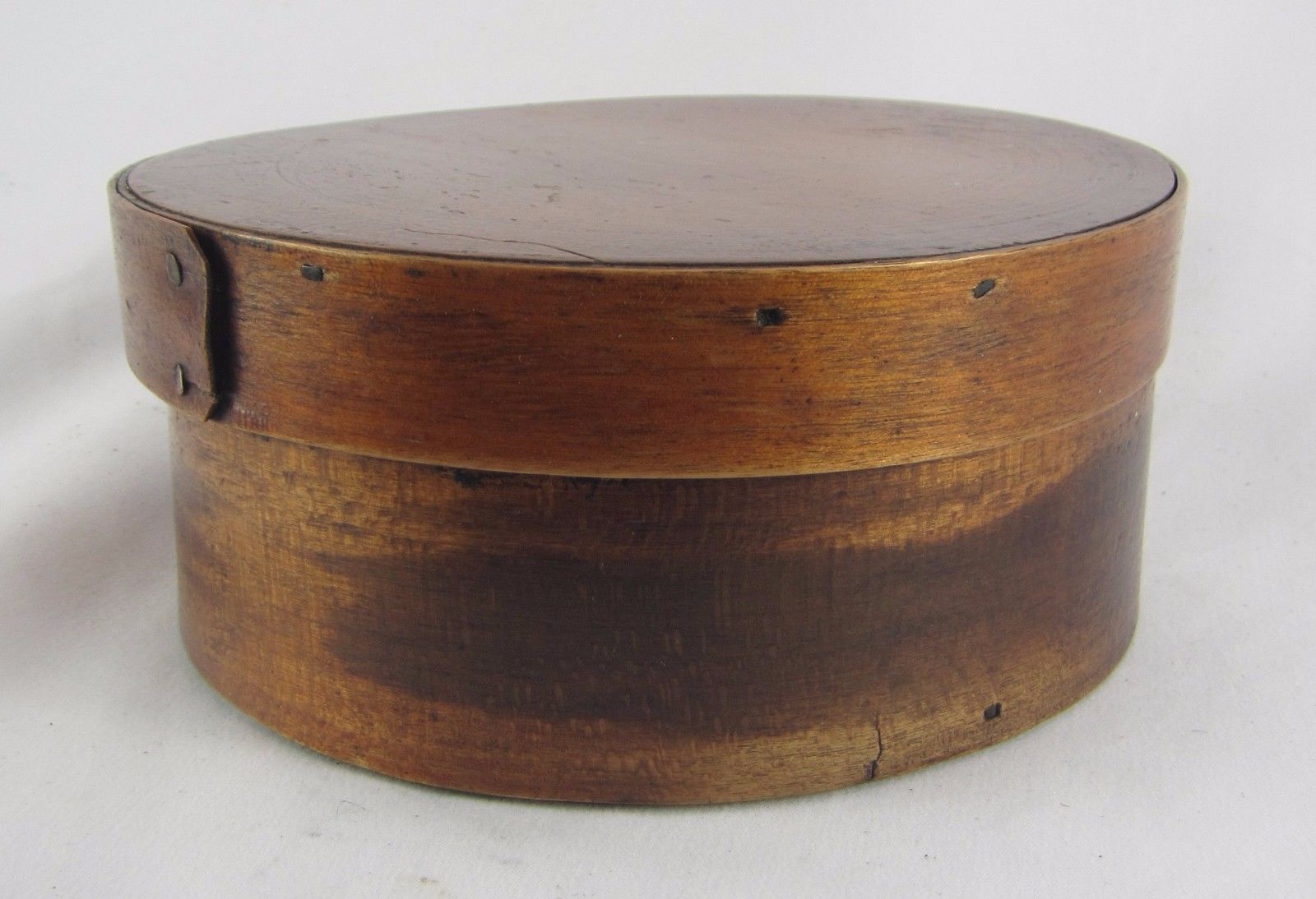 Title (ebay affiliate link): Antique Bentwood Small Honey-Colored Wood Pantry Box and Lid w/ Copper Nails