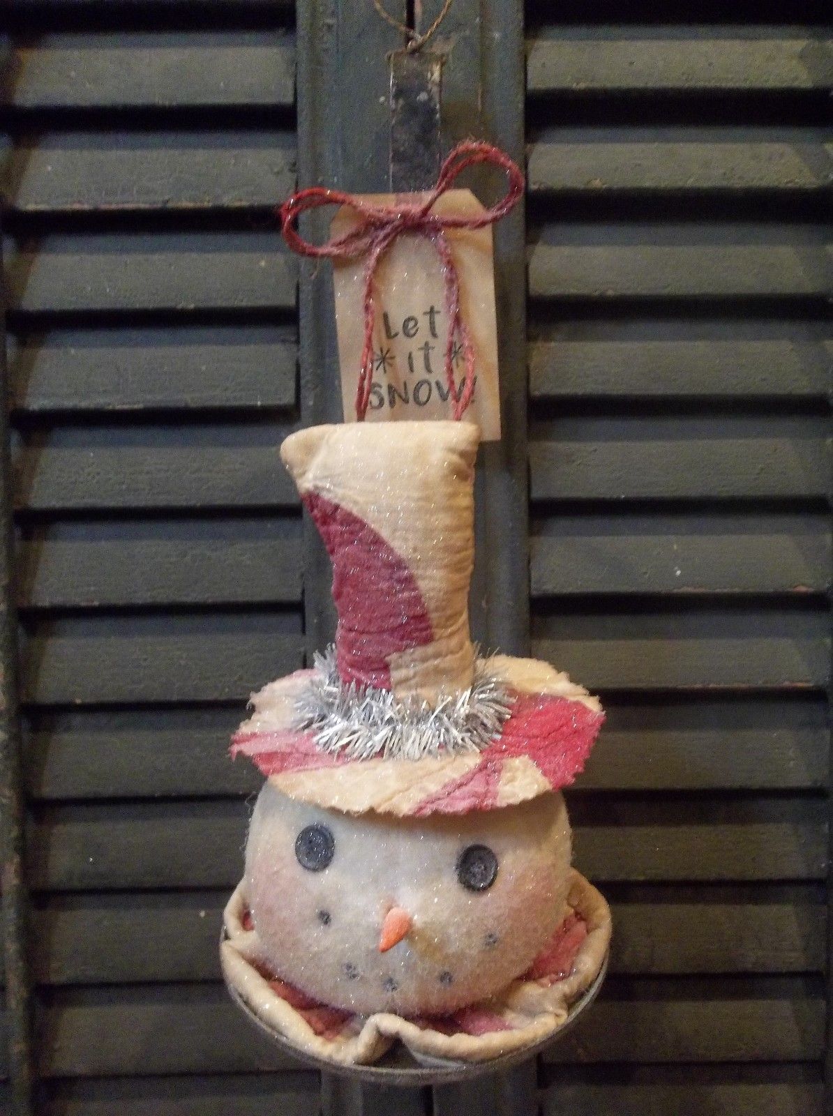 Title (ebay affiliate link): Sweet Prim Handmade Christmas/Holiday Decoration-Snowman in Old Metal Ice Scoop
