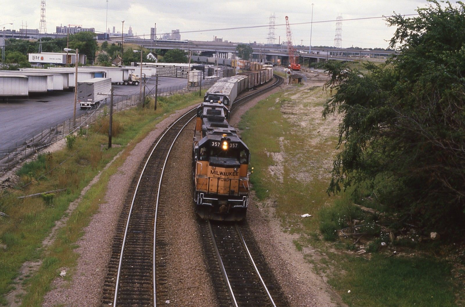 Title (ebay affiliate link): Orig Slide MILW Milwaukee Road GP38-2 #357+2 w/Train - Milwaukee WI 1984
