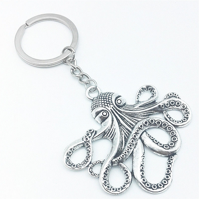Octopus Key Ring Steampunk Nautical Squid Kraken Pirate antique Silver Jewe