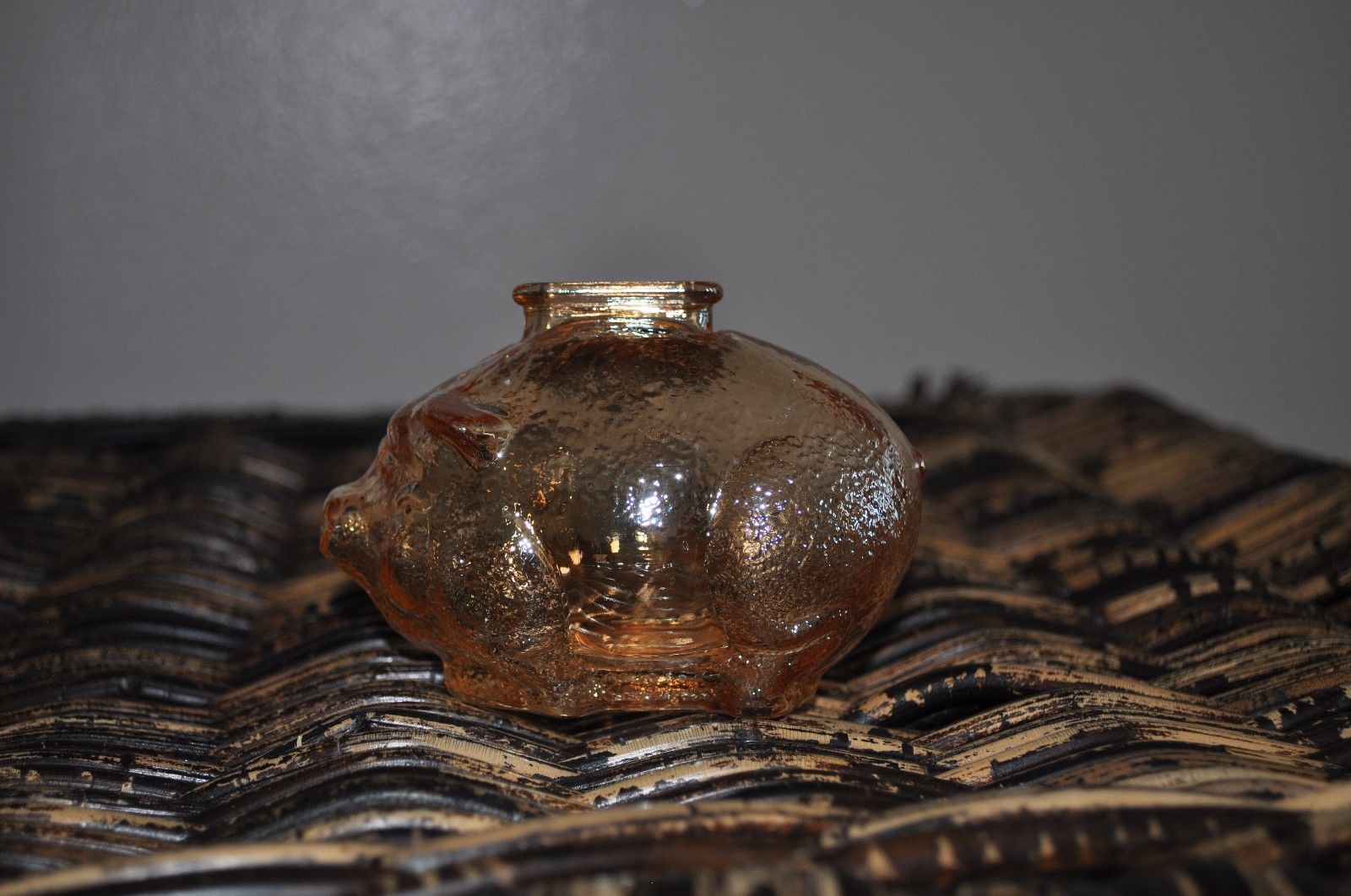 Title (ebay affiliate link): Vtg Peach Amber Carnival Depression Glass Miniature Coin Small Piggy Pig Bank