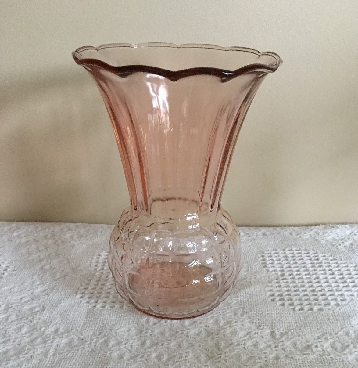 Title (ebay affiliate link): Vintage Pink Depression Large Glass Vase; Waffle Rib - Ruffled Top-Ex.