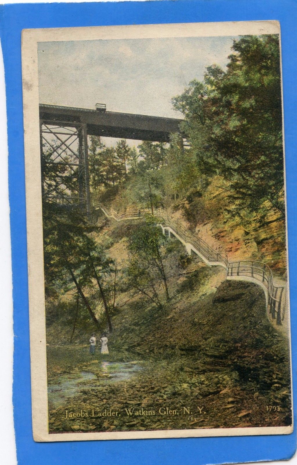 Title (ebay affiliate link): Watkins Glen New York vintage hand tinted postcard, Jacobs Ladder, couple ladies