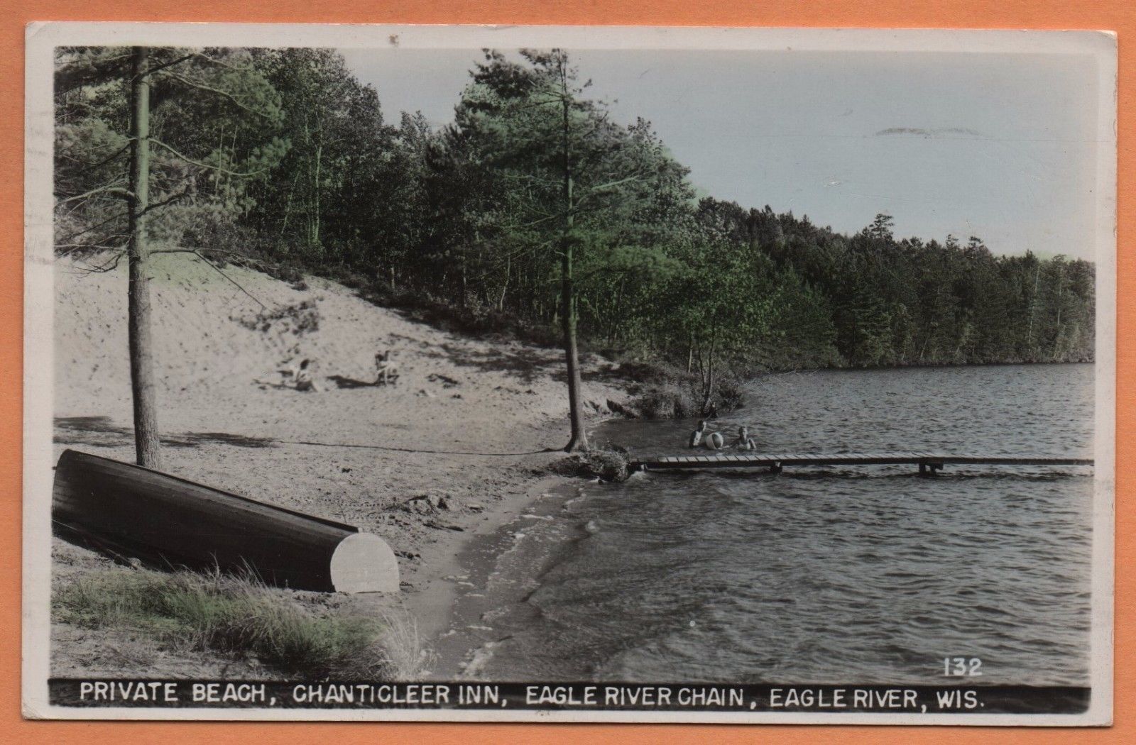 WI Wisconsin Eagle River Chanticleer Inn Beach Vilas County Postcard RPPC