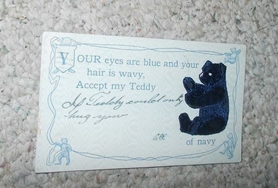 Title (ebay affiliate link): Embroidered Navy Teddy Bear Postcard Romantic 1907