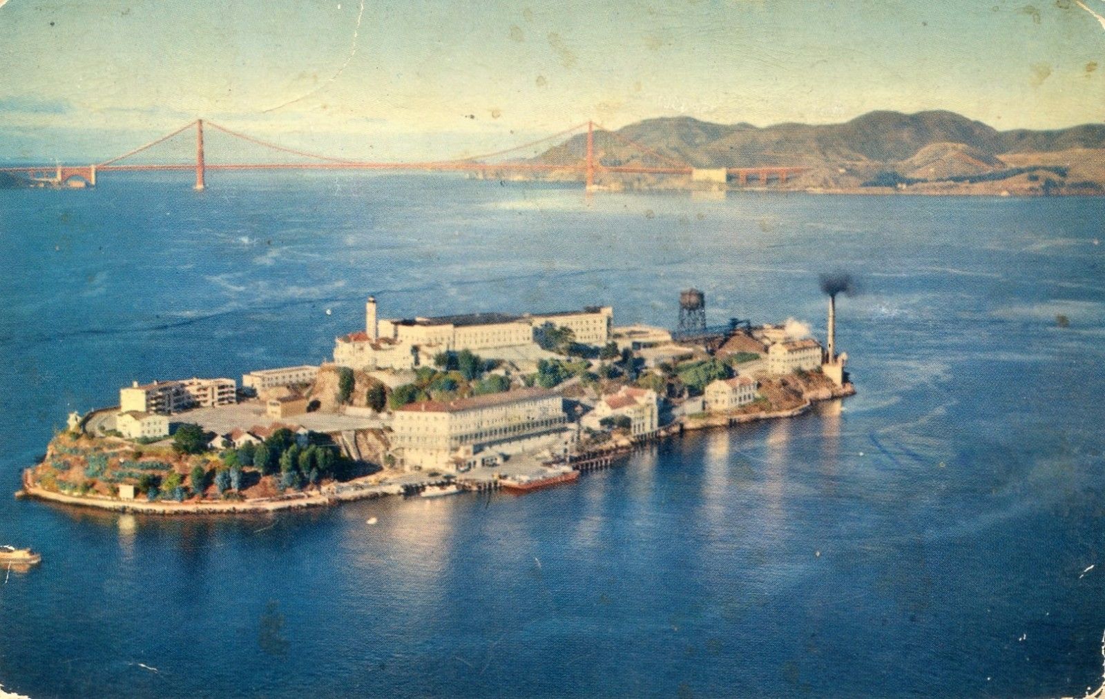 San Francisco CA, vintage postcard, Alcatraz Island, between SF & Sausalito